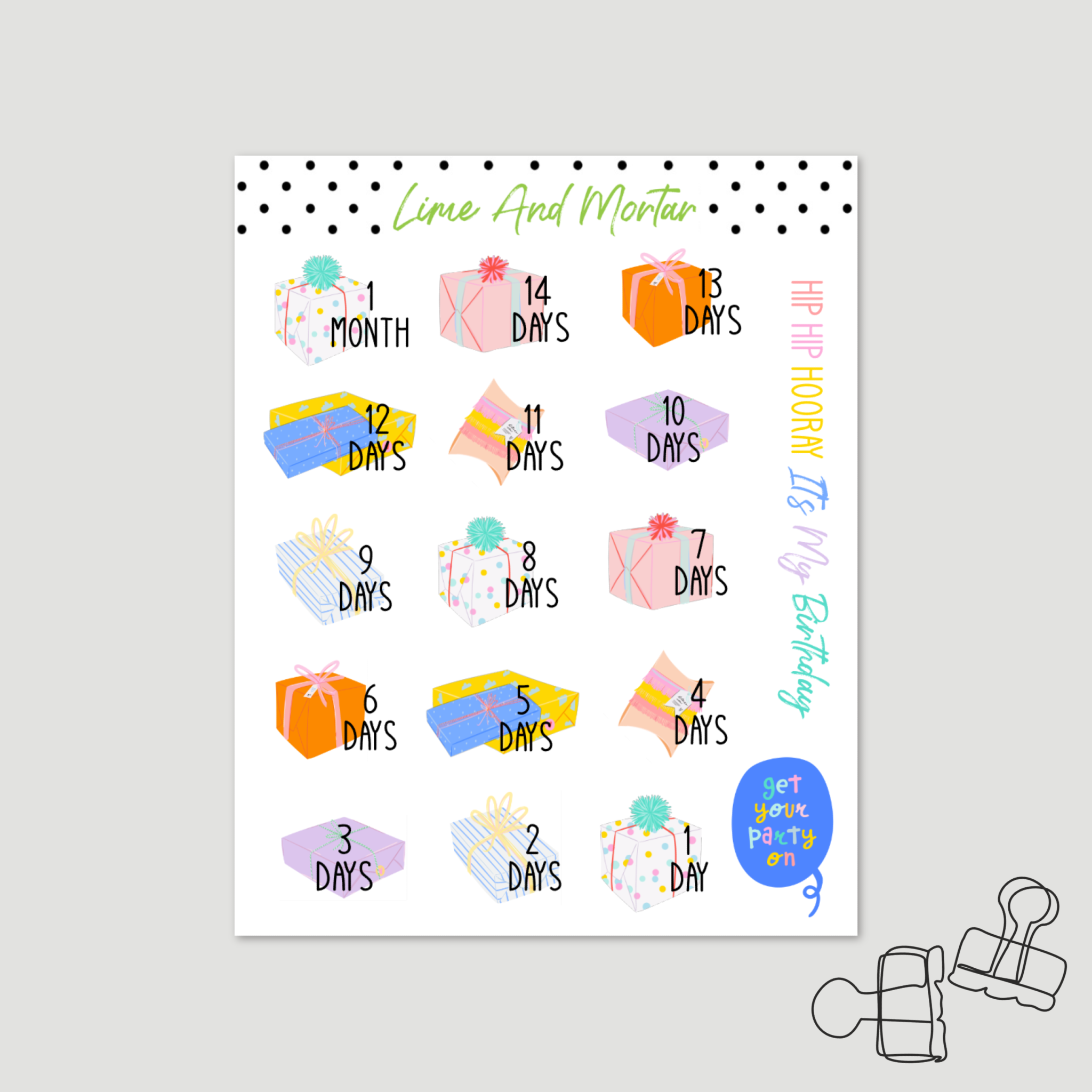 Birthday Party Countdown Stickers