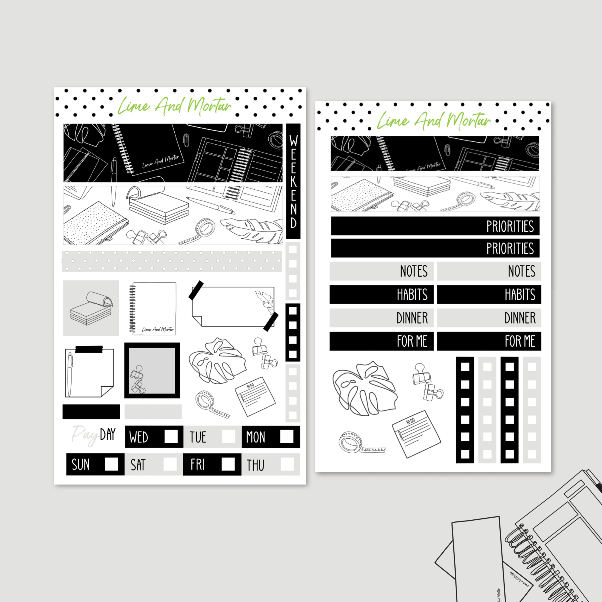 Mini Weeks stickers are designed for the Lime Mini Weeks planner but could be used in other small planners too such as Hobonichi Weeks. The planner stickers are printed on premium matte sticker paper.