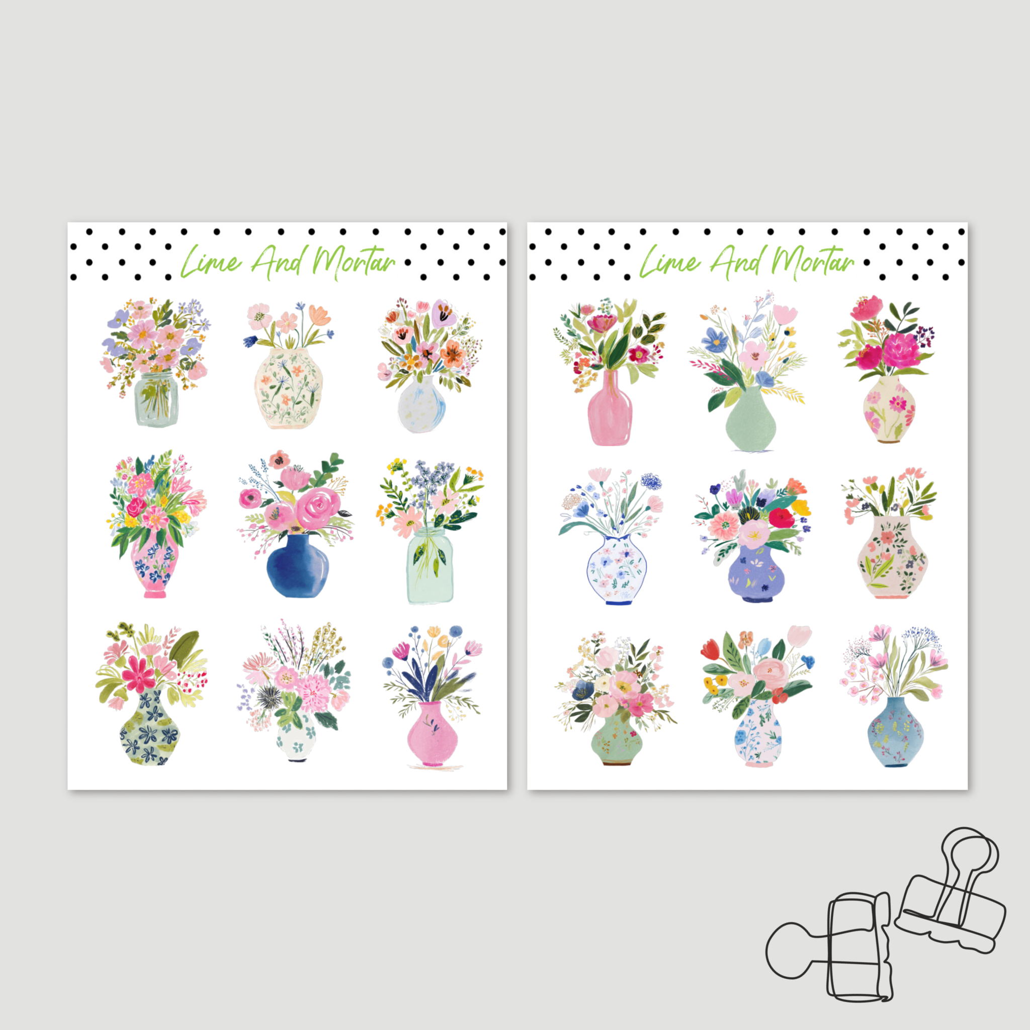 These pretty flower vases are a pretty addition to any planner. They are printed on premium matte sticker paper and come kiss cut on a sheet ready to stick into your planner.