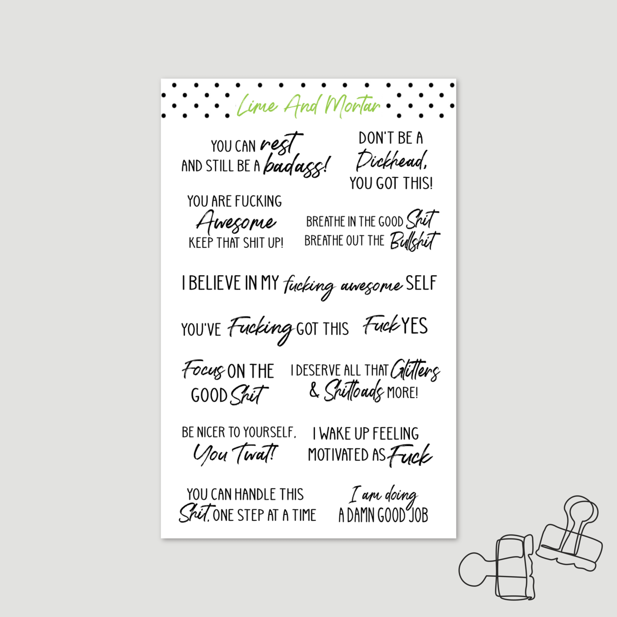 Perfect for all planners - for those sweary situations. These stickers are printed on premium matte sticker paper and come kiss cut on a sheet ready to stick into your planner.