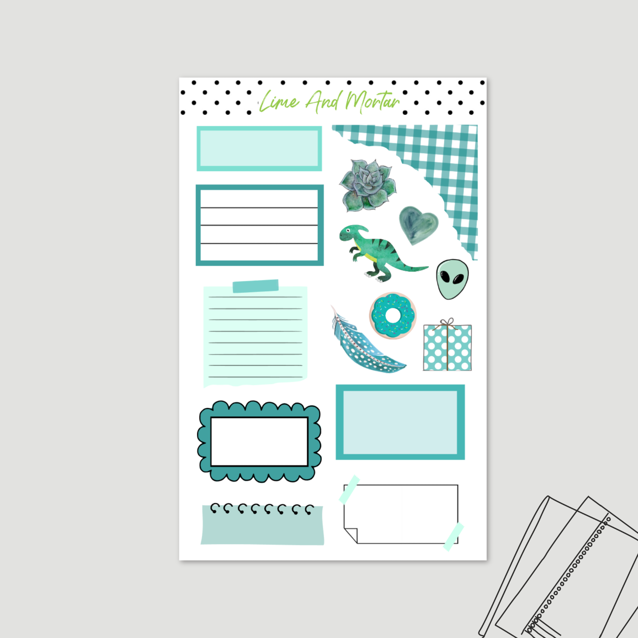 Journal kit contains a range of labels + decorative stickers to create a pretty layout in your planner or journal. Also perfect to use in your Lime Weekly planner with washi tape stack!